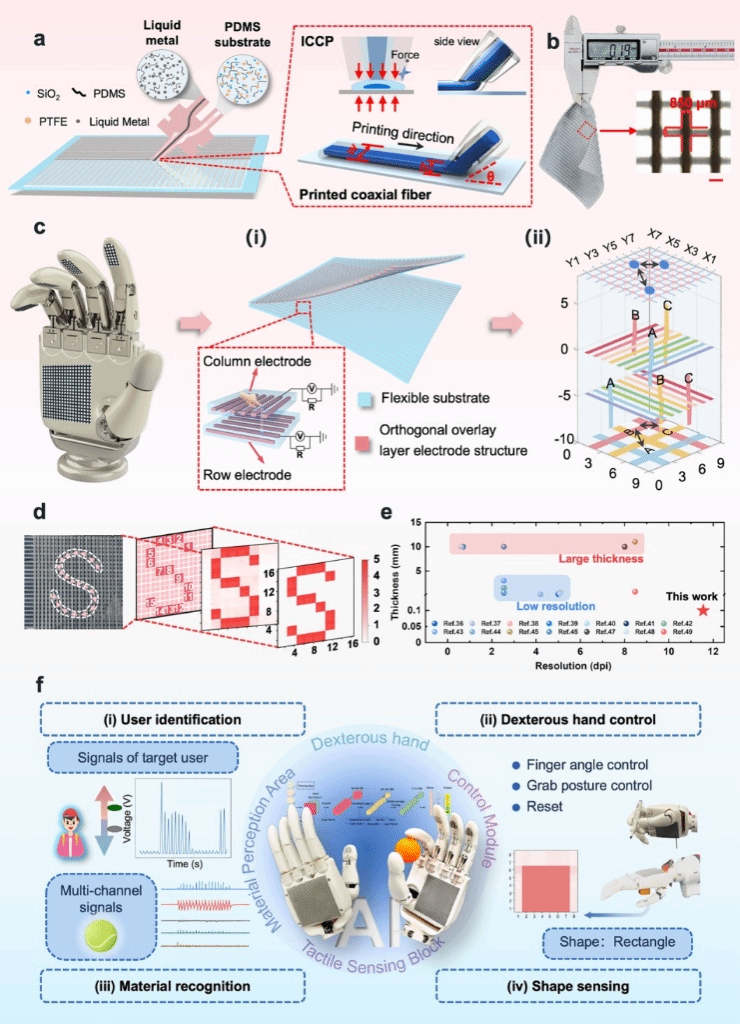 电子皮肤(E-skin)是实现灵巧手触觉感知的关键技术,架起了人机交互与智能响应之间的桥梁,其多功能感知、决策与交互控制的高集成能力,是实现灵巧手类人操作的核心前提。然而,现有电子皮肤普遍存在功能单一、制造工艺复杂、规模化生产难等技术瓶颈,难以满足医疗手术、工业操控等领域对高精度、自适应交互的严苛需求。此外,如何将高性能传感材料、可扩展制造工艺与先进人工智能算法深度融合,构建集“感知-认知-控制”于一体的电子皮肤系统,仍是亟待突破的难题。