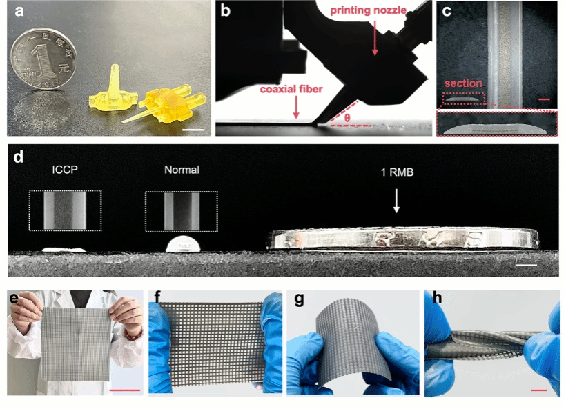 龚峰教授、李辉副教授联合中山大学蒋乐伦教授等团队,在《Advanced Functional Materials》(影响因子:19)发表论文,提出界面限域同轴打印技术(ICCP),成功开发 AI 赋能的全打印可拉伸电子皮肤(TE-Skin)。该研究通过“全区域集成 + 多功能协同 + 规模化制造”的一体化设计制造,实现电子皮肤在灵巧手指尖、手掌、手背适配,兼具触觉成像、材质鉴别、用户认证与手势控制等多重功能。