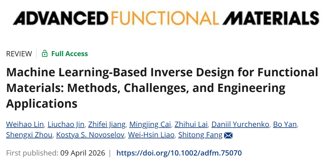 方仕童副教授团队联合香港中文大学、新加坡国立大学、英国南安普敦大学、西北工业大学、西安电子科技大学、浙江科技大学的研究团队,在国际材料顶刊《Advanced Functional Materials》(IF=19.0)发表重磅综述论文,系统性综述了机器学习驱动功能材料逆向设计核心方法与工程应用。