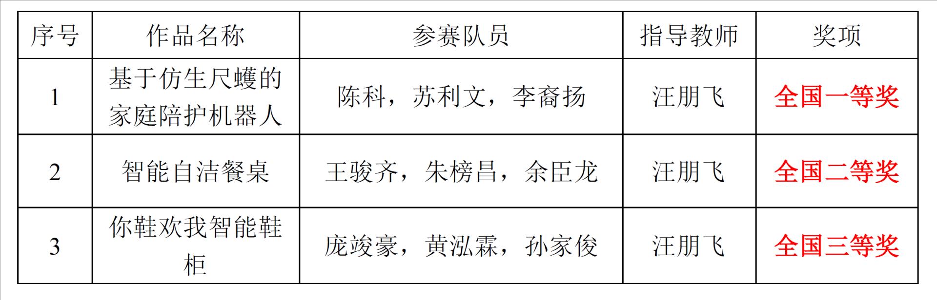 汪朋飞老师指导的三支本科生队伍取得了优异成绩,荣获全国一等奖1项,全国二等奖1项和全国三等奖1项。