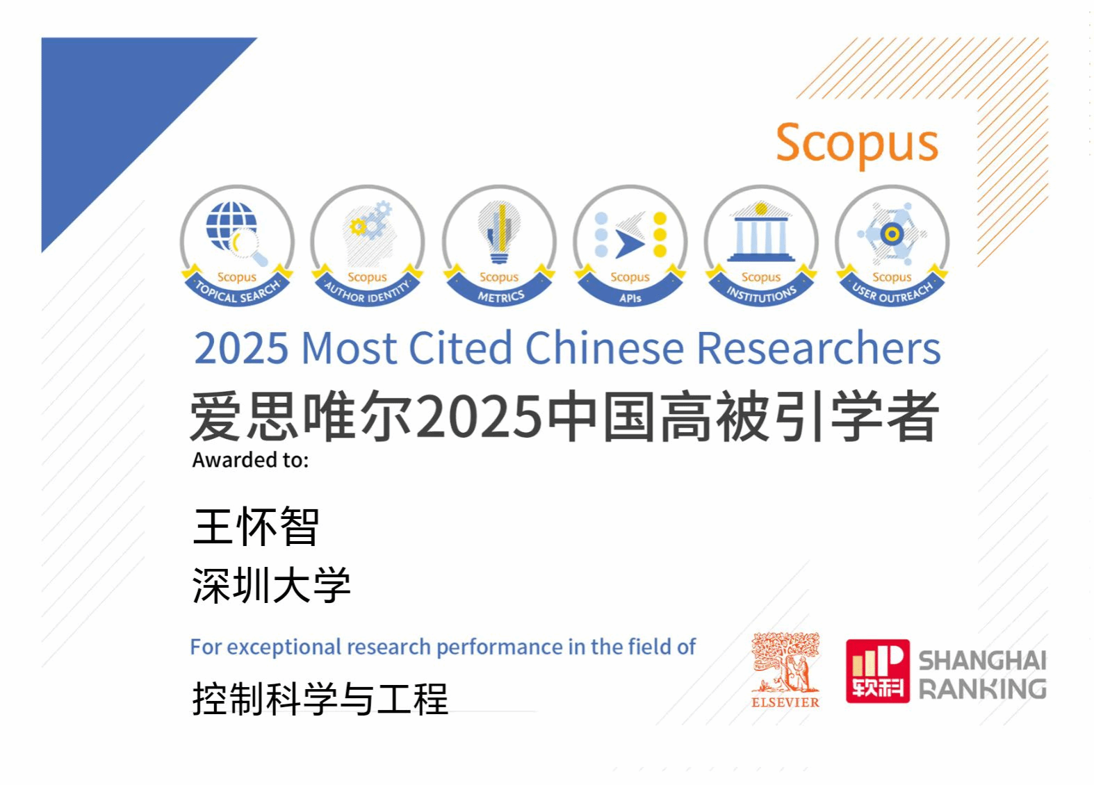 王怀智,副教授,于2015年在华南理工大学获得博士学位,为深圳市孔雀计划海外人才。主要研究方向为机器人与智能网联系统,包括自动控制、多传感融合、电力信息融合系统。共发表论文115篇,其中含57篇SCI论文和7篇ESI高被引论文。近五年主持项目7项,其中国自然基金2项(青年+面上),省部级2项,累计到账经费493万。已授权国家级发明专利4项。2022-2025年连续四年入选全球前2%顶尖科学家“年度科学影响力”榜单,2025年入选全球前2%顶尖科学家“终生影响力”榜单。入选2024、2025爱斯维尔中国高被引学者榜单。荣获广东省2024年自然科学二等奖、中国发明协会创新奖创业奖一等奖。谷歌学术被引7000余次,H 指数为33。担任《Protection and Control of Modern Power Systems》和《Information Processing in Agriculture》大类一区TOP SCI编委(Associate Editor),《电力系统保护与控制》等杂志青年编委。获评“日本AV女优