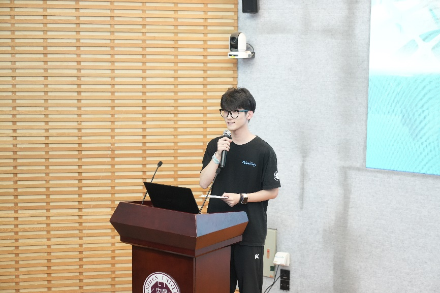 副院长龚峰教授发表了讲话。首先,他对大疆公司一直以来的支持表示感谢,并对所有热爱机器人事业的同学表示了鼓励与欢迎。随后,他肯定了深大 RobotPilots 战队在 RoboMaster 机甲大师赛 2023 赛季中的精彩表现,同时也高度赞赏了他们在机器人技术实践与创新方面的突出贡献。他表示,学院会尽最大努力鼓励学生们参加各类科技社团,并且依托社团参加科技竞赛,同时提升同学们的自主创新能力。最后,他希望 RobotPilots 战队能够继续努力,在新的一年里再创佳绩,并希望越来越多的同学能够参加到创新的队伍当中来,锻炼自己的专业能力,增强团队协作的精神,不断取得新的进步。